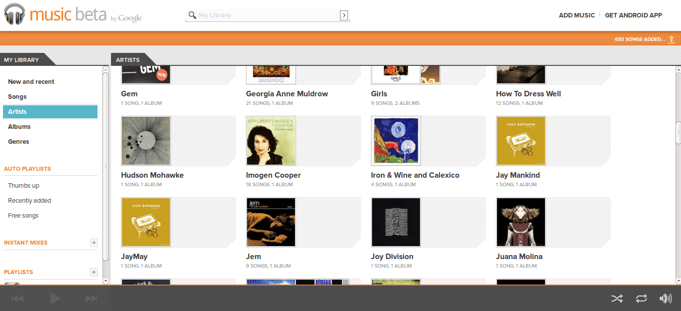 Now if only they’d add a Flattr button for each artist to their interface, it’d be perfect! Oh, and it doesn’t ‘sync’ with my library – if I delete something on my computer, Google Music doesn’t notice and delete it from the cloud. I imagine that’s a feature they’ll add later.